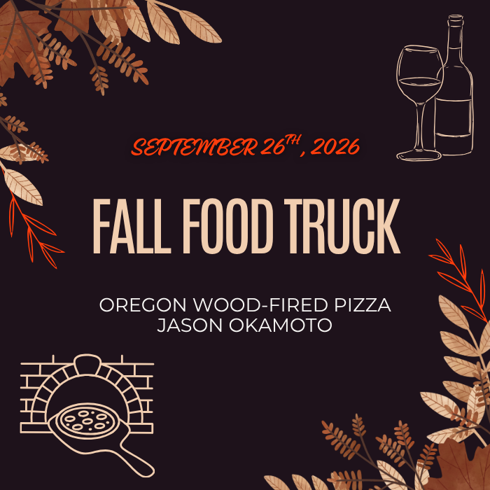 We are excited to welcome Oregon Wood Fired Pizza back for a fun day of food and wine as we watch the season change to fall.